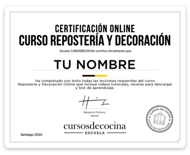 Al finalizar, obtén tu certificación como repostero, avalando todo lo que aprendiste.