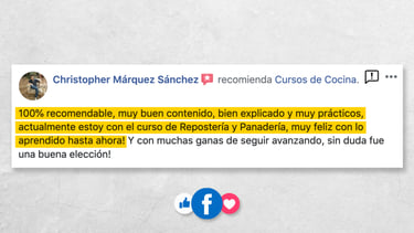 Alumnos de diferentes niveles ya completaron este curso y hoy dominan técnicas de repostería y panadería con confianza. Han logrado mejorar sus recetas, presentar postres más profesionales y, en algunos casos, comenzar a vender lo que hacen.