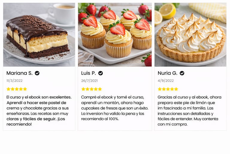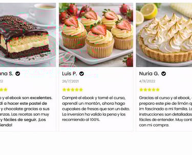 Descubre lo que piensan quienes ya leyeron nuestros e-books y cómo aplicaron lo aprendido en su camino en la reposteríaa